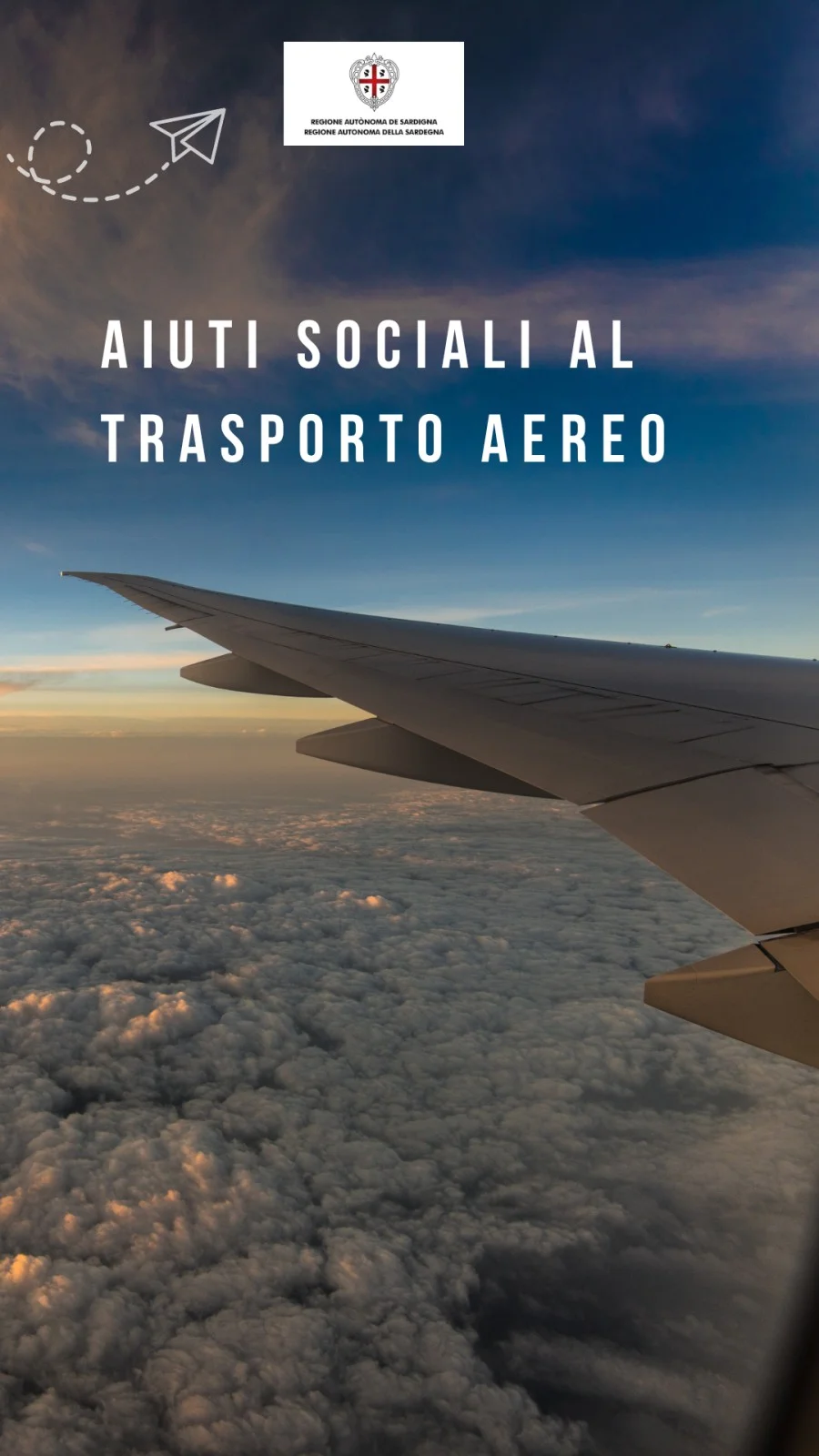 Si rende noto che la Regione Sardegna con Delibera di Giunta Regionale n. 04/30 del 22/01/2025, ha esteso per l’anno 2025 e fino a nuove disposizioni, il sistema di aiuti sociali per il trasporto aereo, che consiste nel riconoscimento di un contributo economico a tutti i cittadini residenti senza limiti di età. Per ulteriori informazioni, consultazione dei documenti e la presentazione delle domande gli utenti dovranno collegarsi al seguente link: https://sardegnatrasporti.regione.sardegna.it/#landing-sections