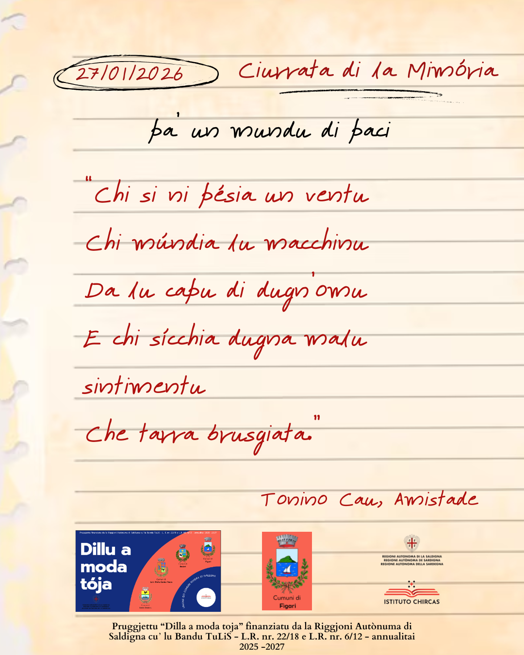 Martedì 27 gennaio 2026 “Giornata della Memoria” Comune di Golfo Aranci